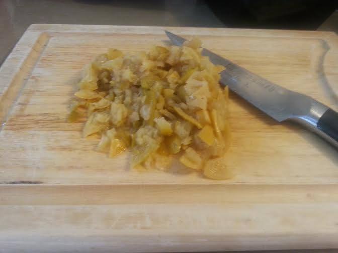 במקביל קוצצים לימון כבוש בלי הגרעינים.