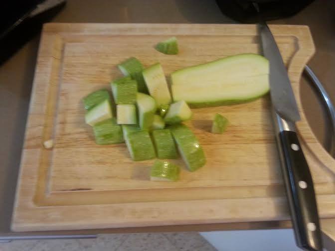 קוצצים קישוא לקוביות גדולות.