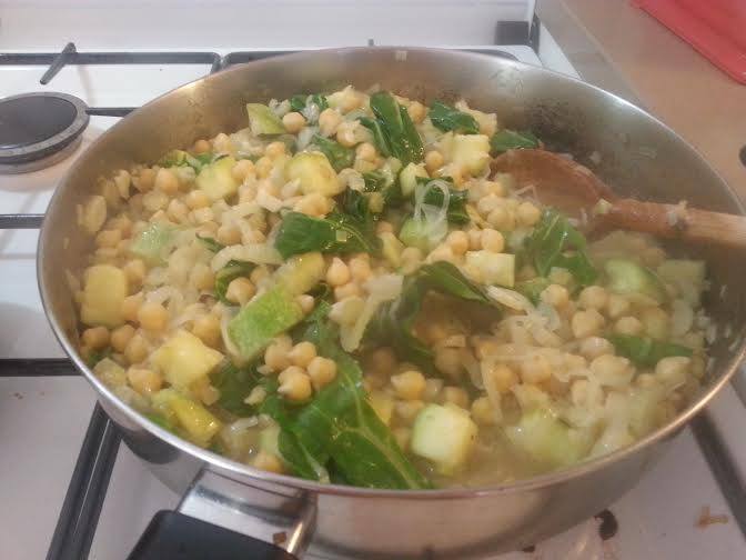 בצל, כרישה, סלרי, שום, לימון כבוש, קישואים, מנגולד, גרגירי חומוס מבושלים (הכי טוב מונבטים אבל לא חובה), שמן זית או שמן קוקוס לטיגון